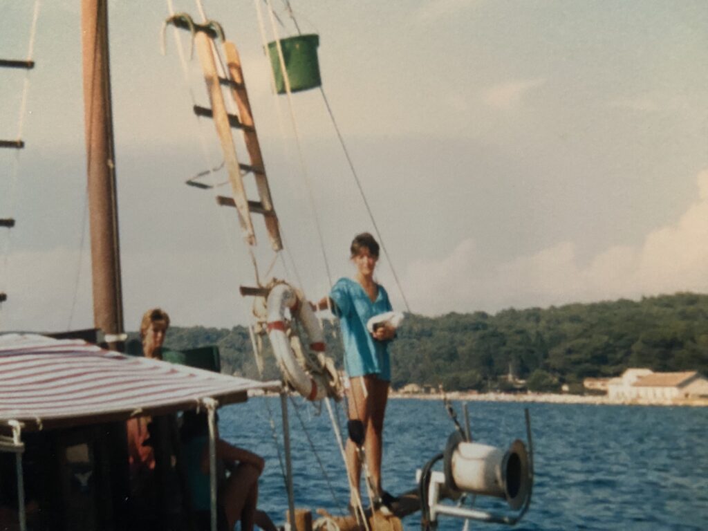 In 1986, young and restless, I boarded a bus from Amsterdam to Poreč, Croatia with Annemarie. This was pre-war Croatia, its coastline a breathtaking stretch of beauty—Poreč, Rovinj, Pula, and the islands’ stunning shores leaving me awestruck. I’d return solo to Pula in 2019, still charmed. We landed at Zelena Laguna, an international campsite with our tent ready. Late June brought scorching heat, no shade—rise early or bake. Days meant sunbathing and boat trips along that amazing coastline; nights were for partying.
